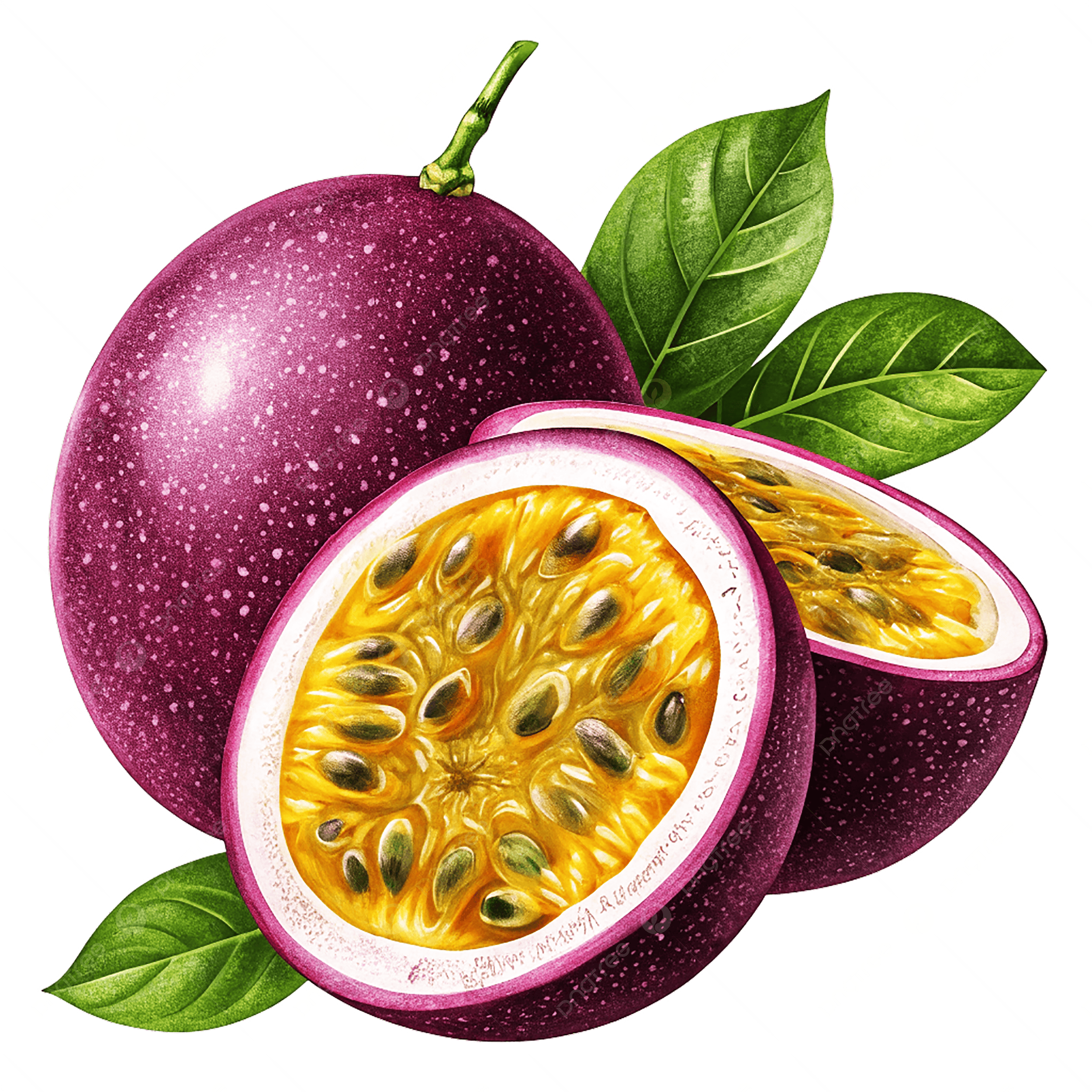 Tropical passion fruit with tangy, aromatic pulp, rich in fiber and antioxidants.